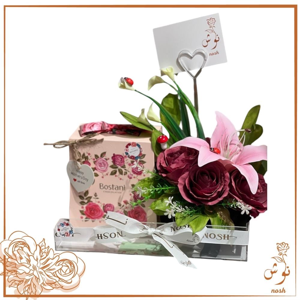 بوكس أنيق يحتوي على شوكولاتة Bostani الفاخرة 🍫، مع تنسيق زهور ناعم يحمل في تفاصيله حب وامتنان كبير 💝